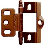 | Wrap around design. Recommended for face frame construction. No mortising required. Choose from ball tip or finial tip. Finial tip pictured here. Hinges have a 2-3/4" barrel. Use on flush 3/4" thick inset doors. Sold in pairs. ...Read more |